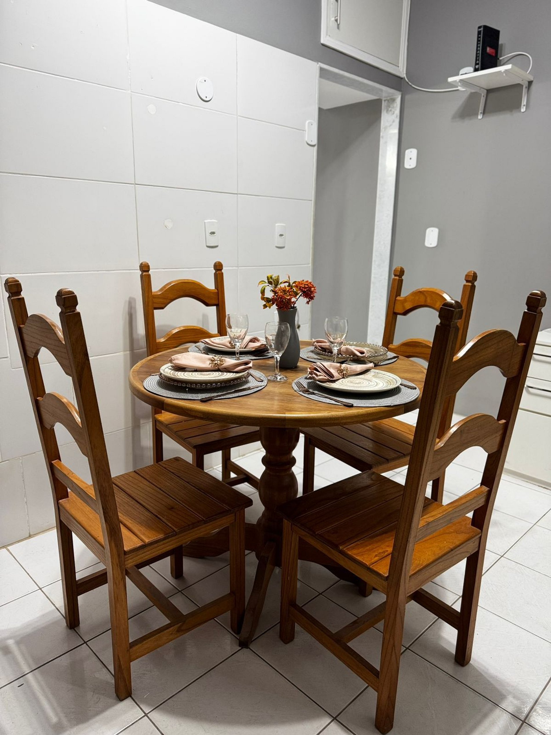 Na sala de jantar, você encontrará uma mesa para 4 pessoas com os utensílios básicos, perfeita para compartilhar momentos e refeições em boa companhia.