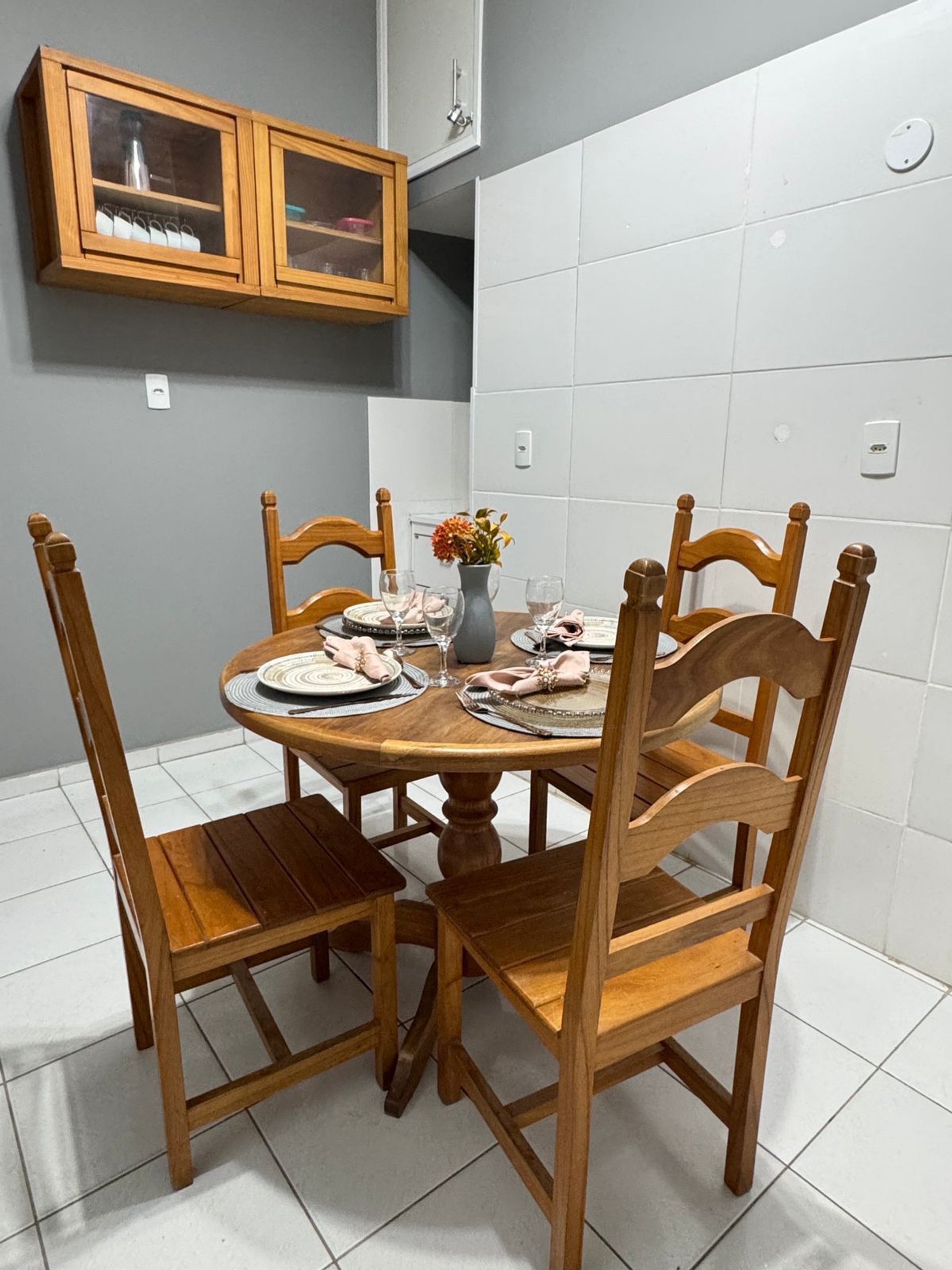 Na sala de jantar, você encontrará uma mesa para 4 pessoas com os utensílios básicos, perfeita para compartilhar momentos e refeições em boa companhia.