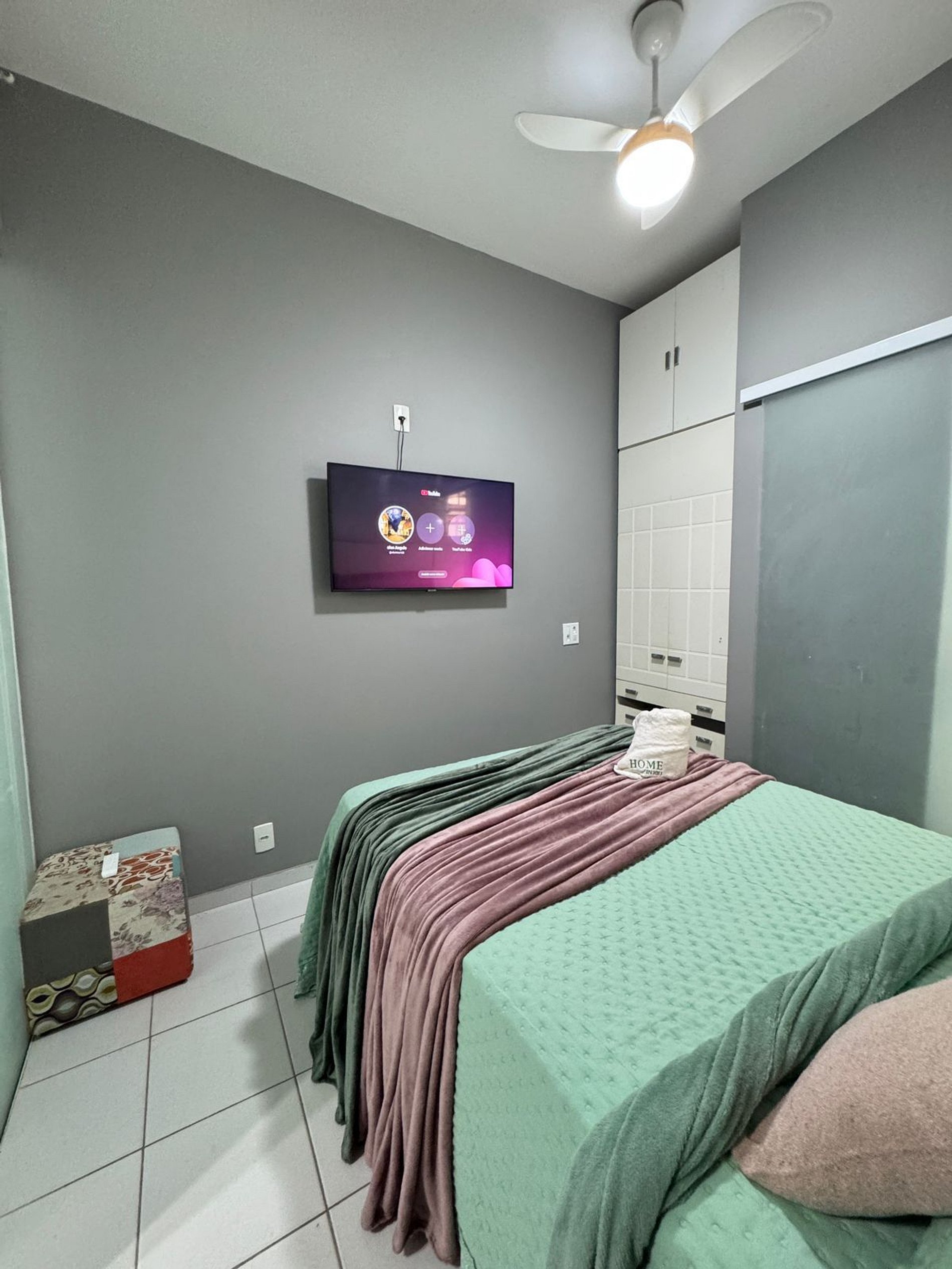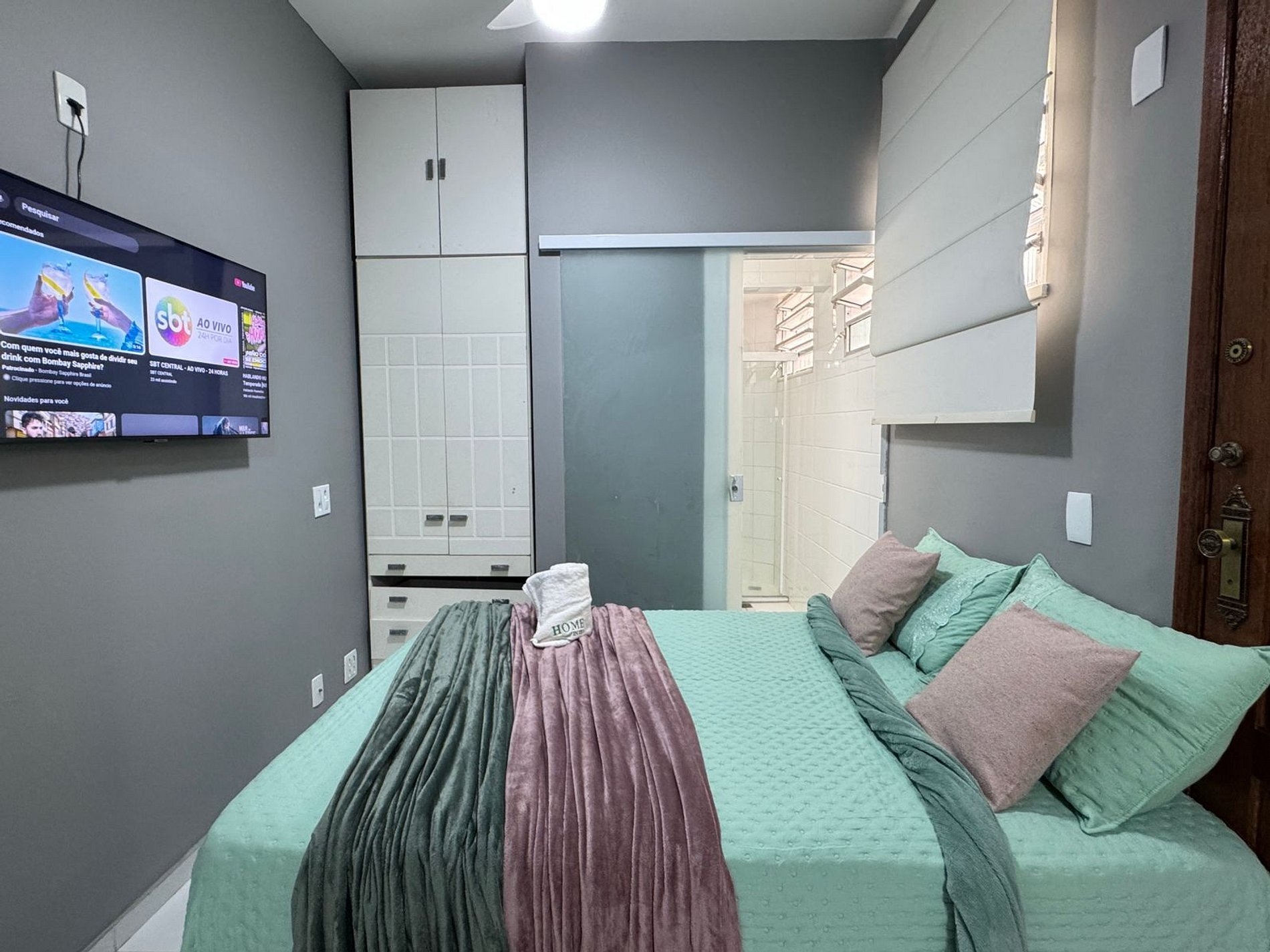 Também equipada com cama de casal, Smart TV, ventilador de teto, guarda-roupa, ferro de passar e roupas de cama, esta suíte oferece um ambiente acolhedor e funcional. Observação: este quarto não possui ar-condicionado. O banheiro privativo segue o mesmo padrão de conforto, com chuveiro a gás, secador de cabelo e toalhas disponíveis.