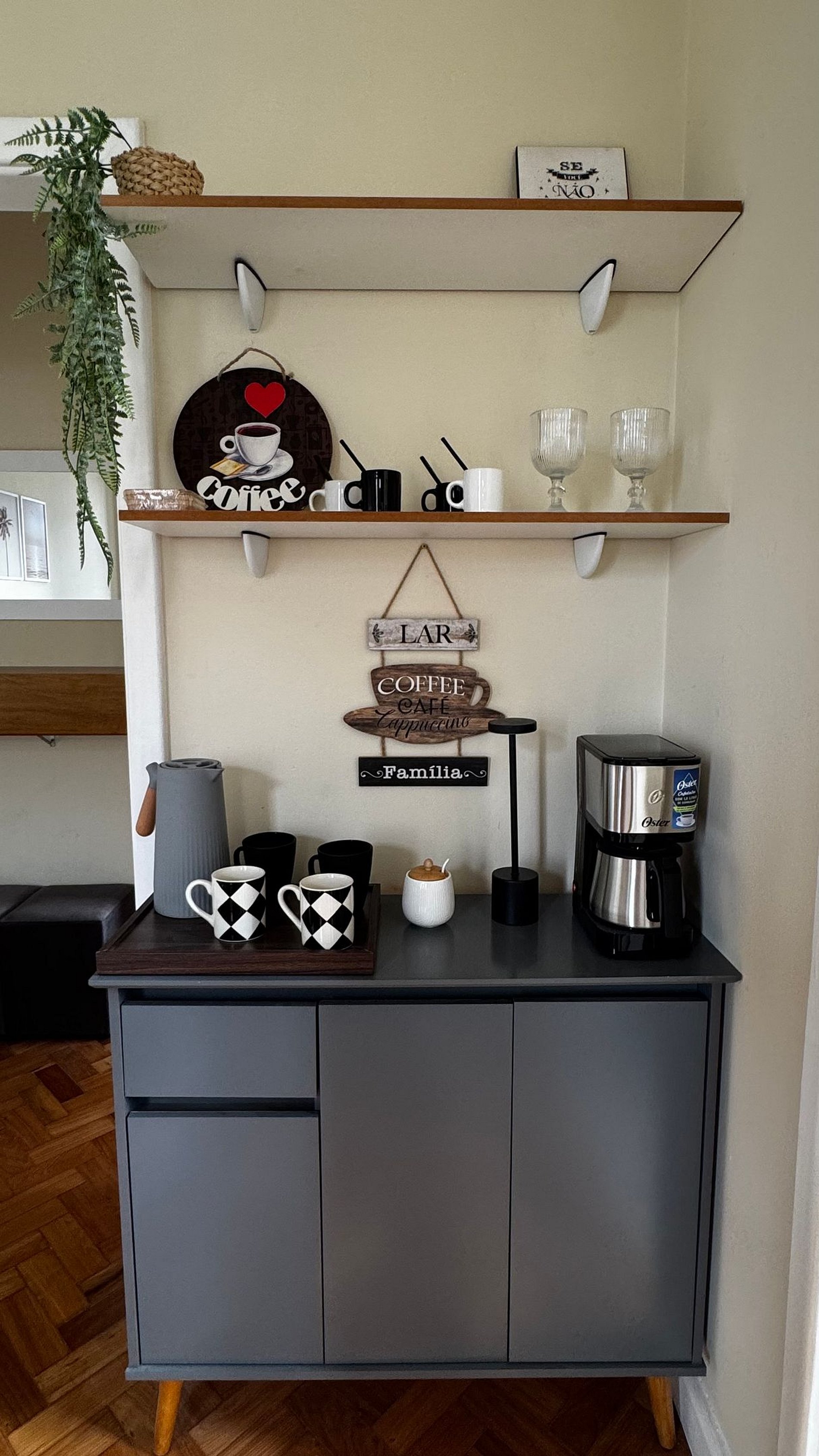 Totalmente equipada para o seu dia a dia, conta com forno e fogão, geladeira, cafeteira, liquidificador e utensílios completos para cozinhar, oferecendo toda a liberdade de se sentir em casa.