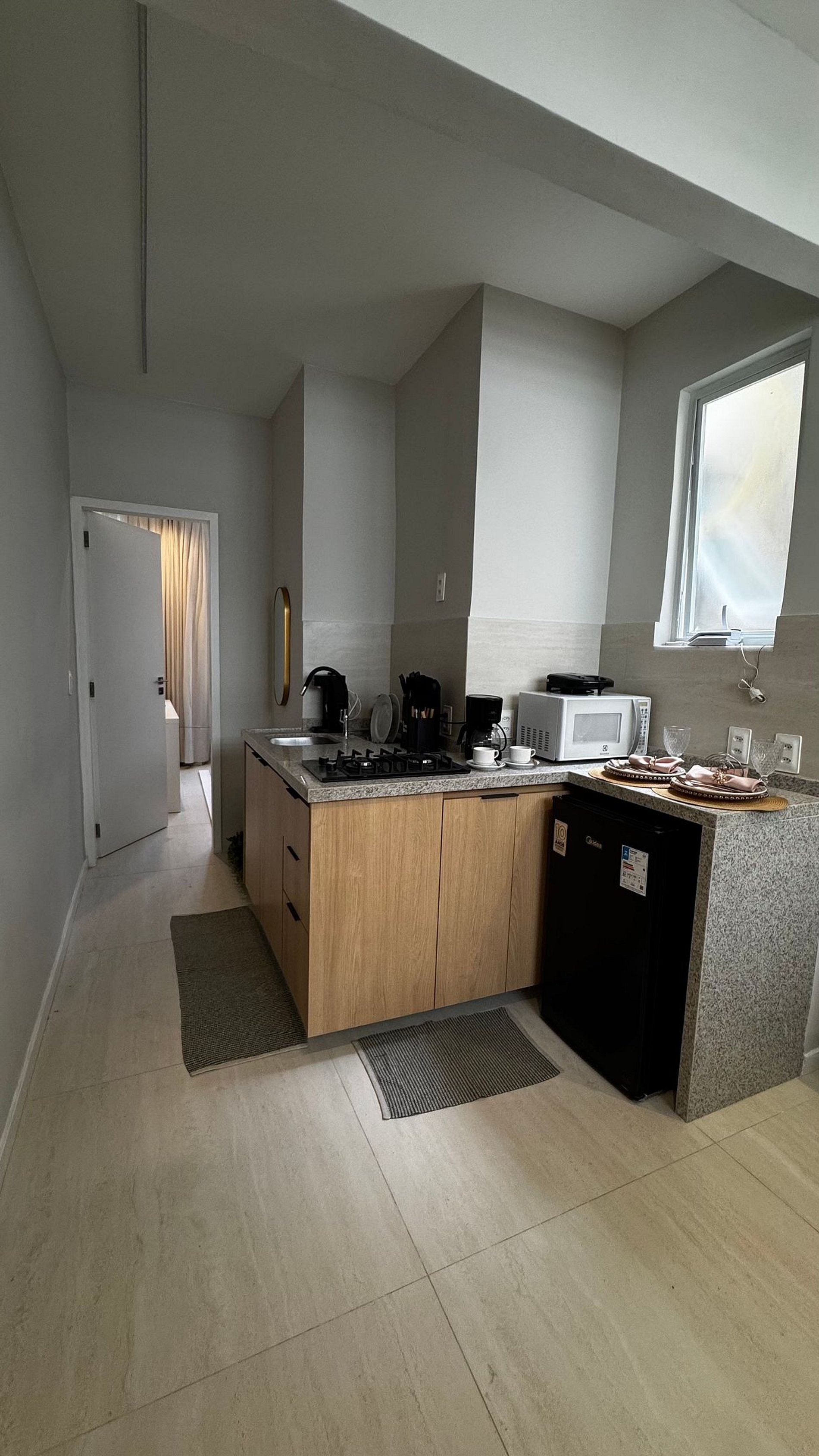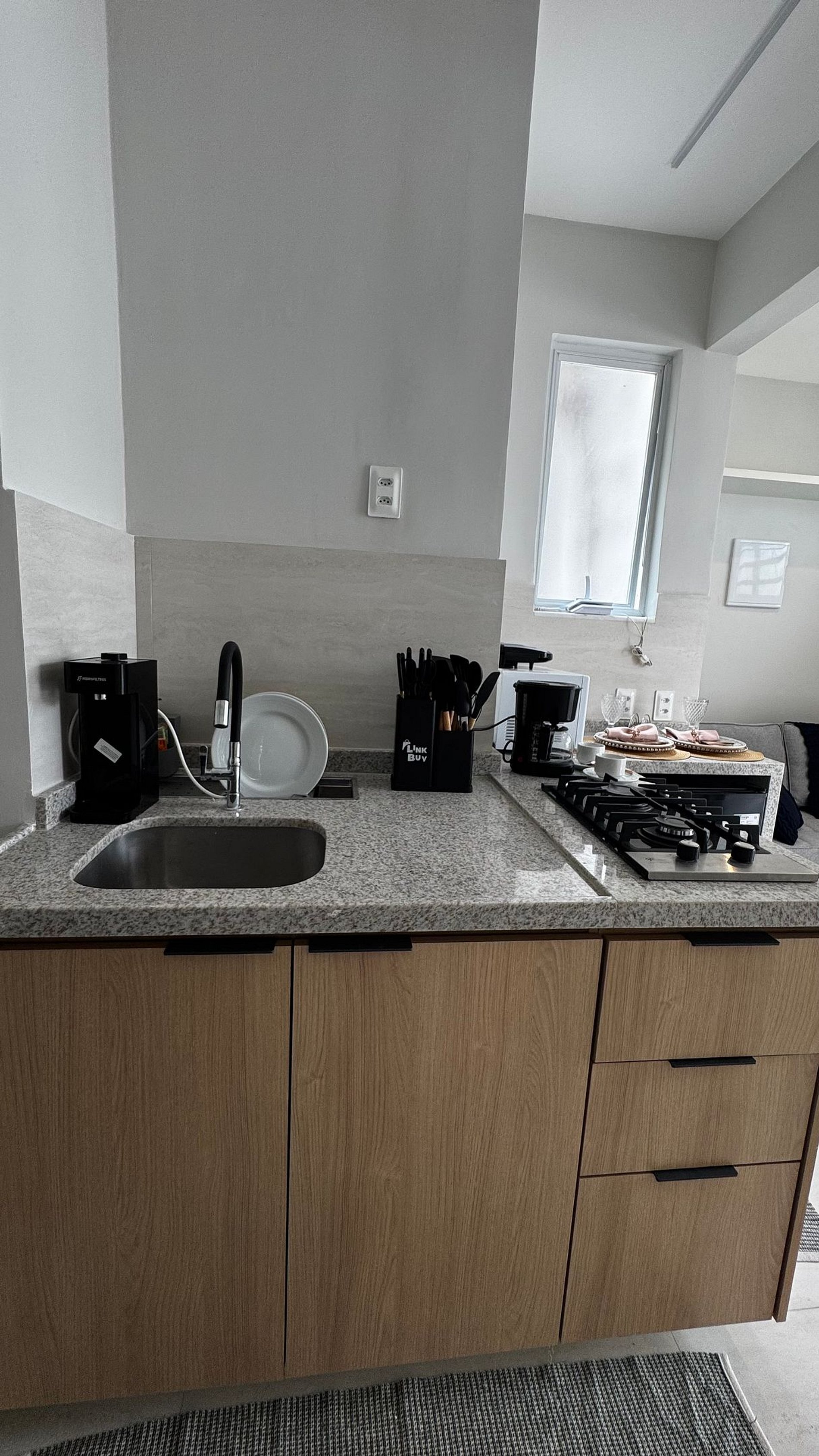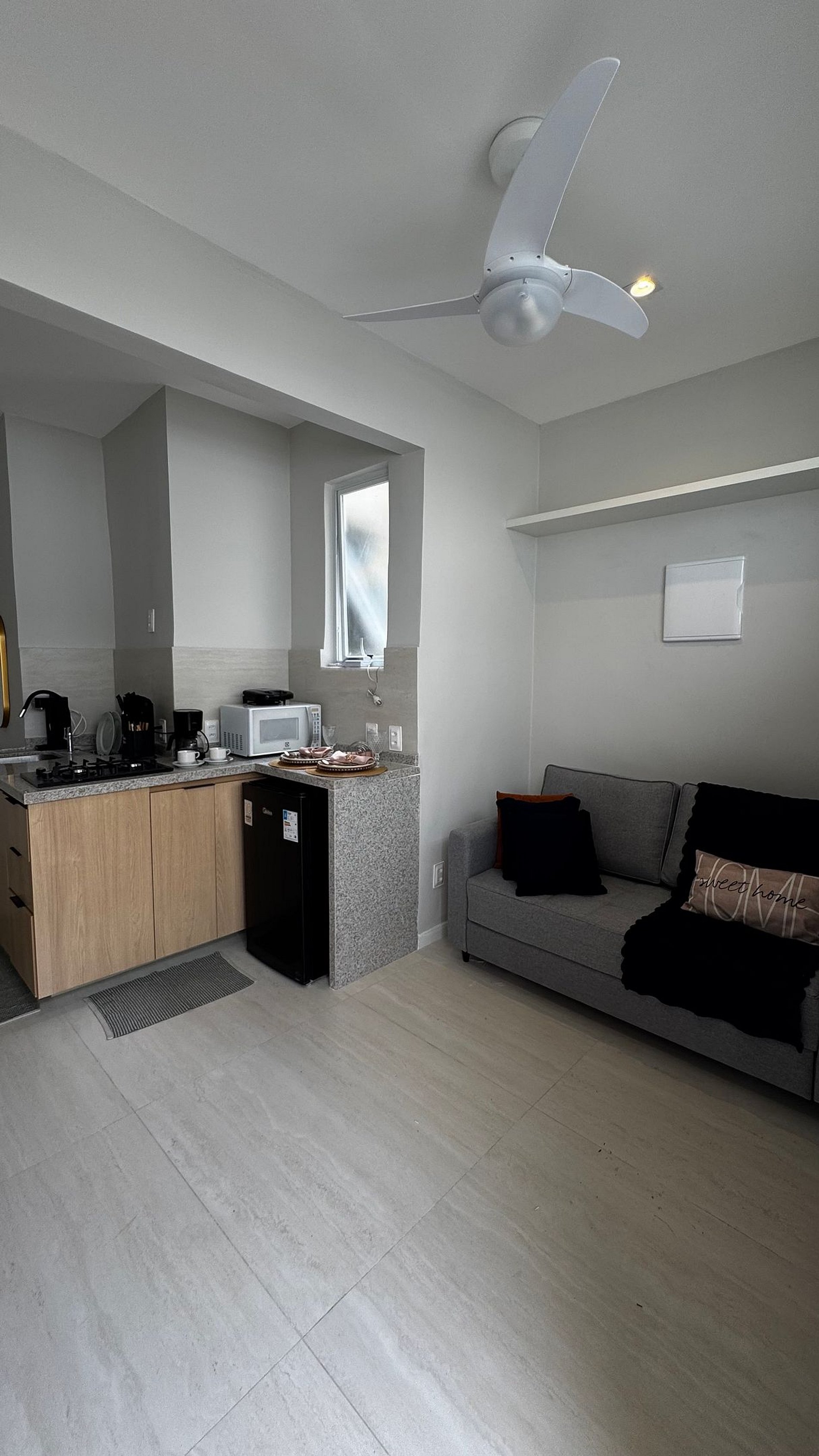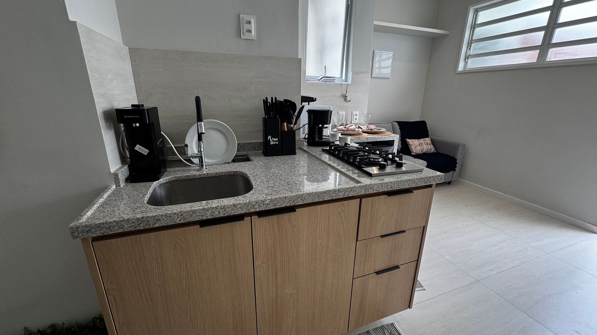 Você terá à disposição frigobar, fogão, micro-ondas, cafeteira, sanduicheira, filtro de água e utensílios para cozinhar. Aqui você tem autonomia para se sentir realmente em casa.