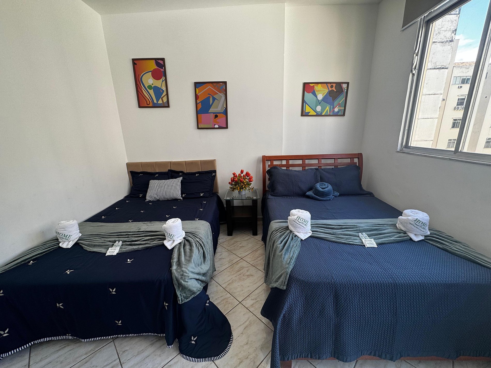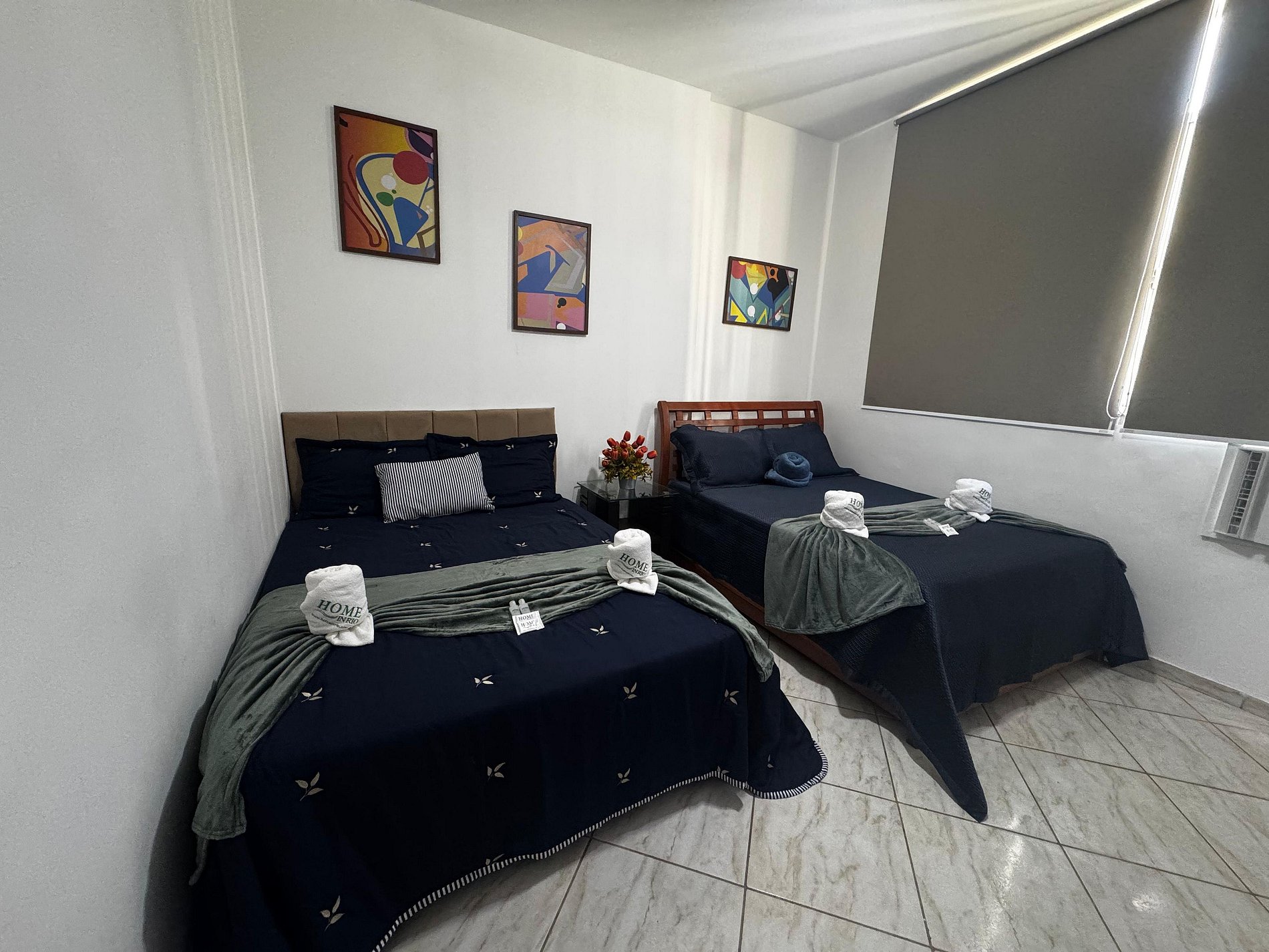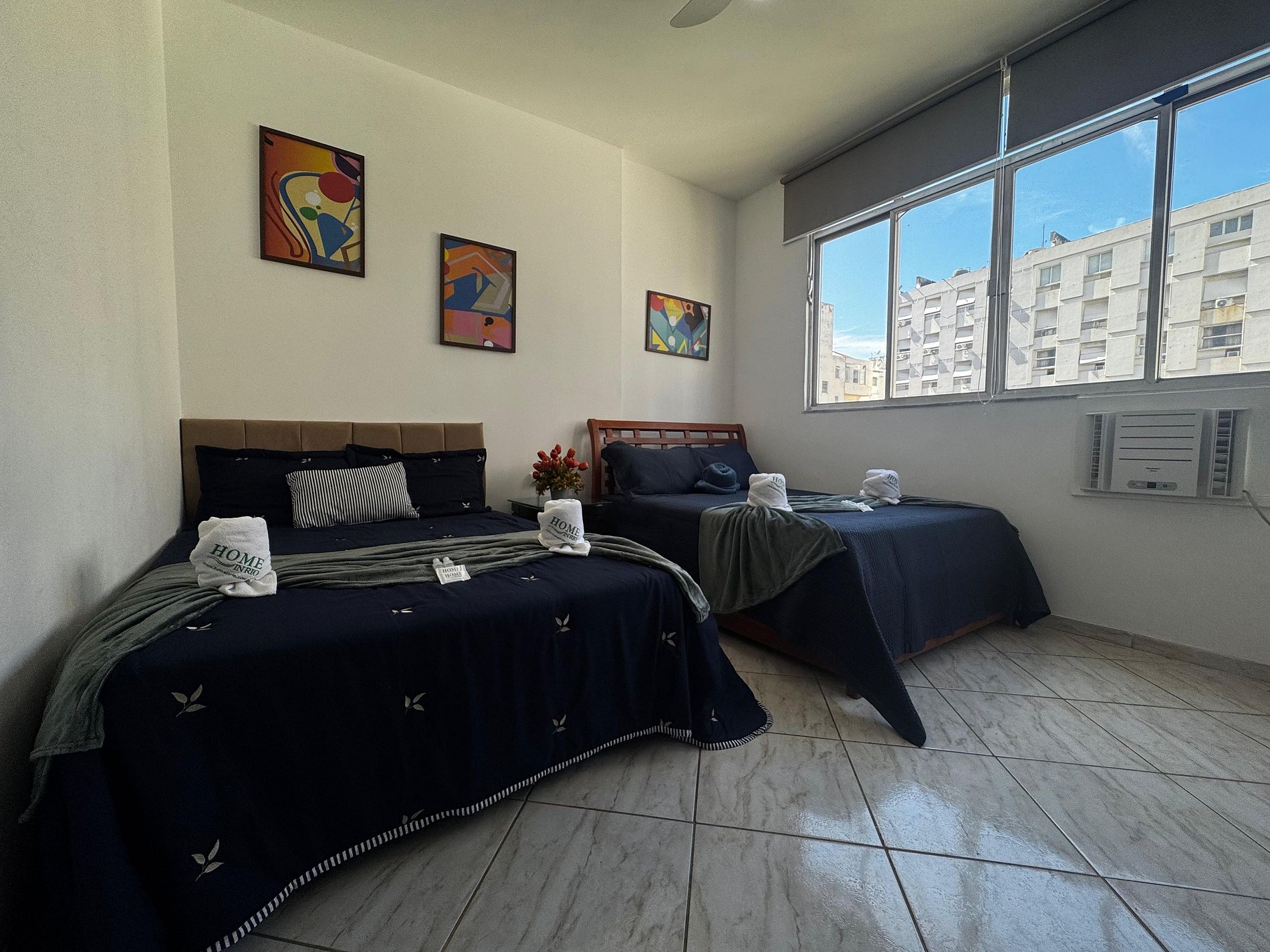 Desfrute de uma boa noite de sono em 2 camas de casal confortável, com roupas de cama limpas e macias, TV para momentos de descanso, guarda-roupa espaçoso para organizar suas coisas e cortina blackout e ar condicionado que fica ideal para quem gosta de dormir até mais tarde ou relaxar com privacidade. Também disponibilizamos ferro de passar roupas, garantindo praticidade durante sua estadia.