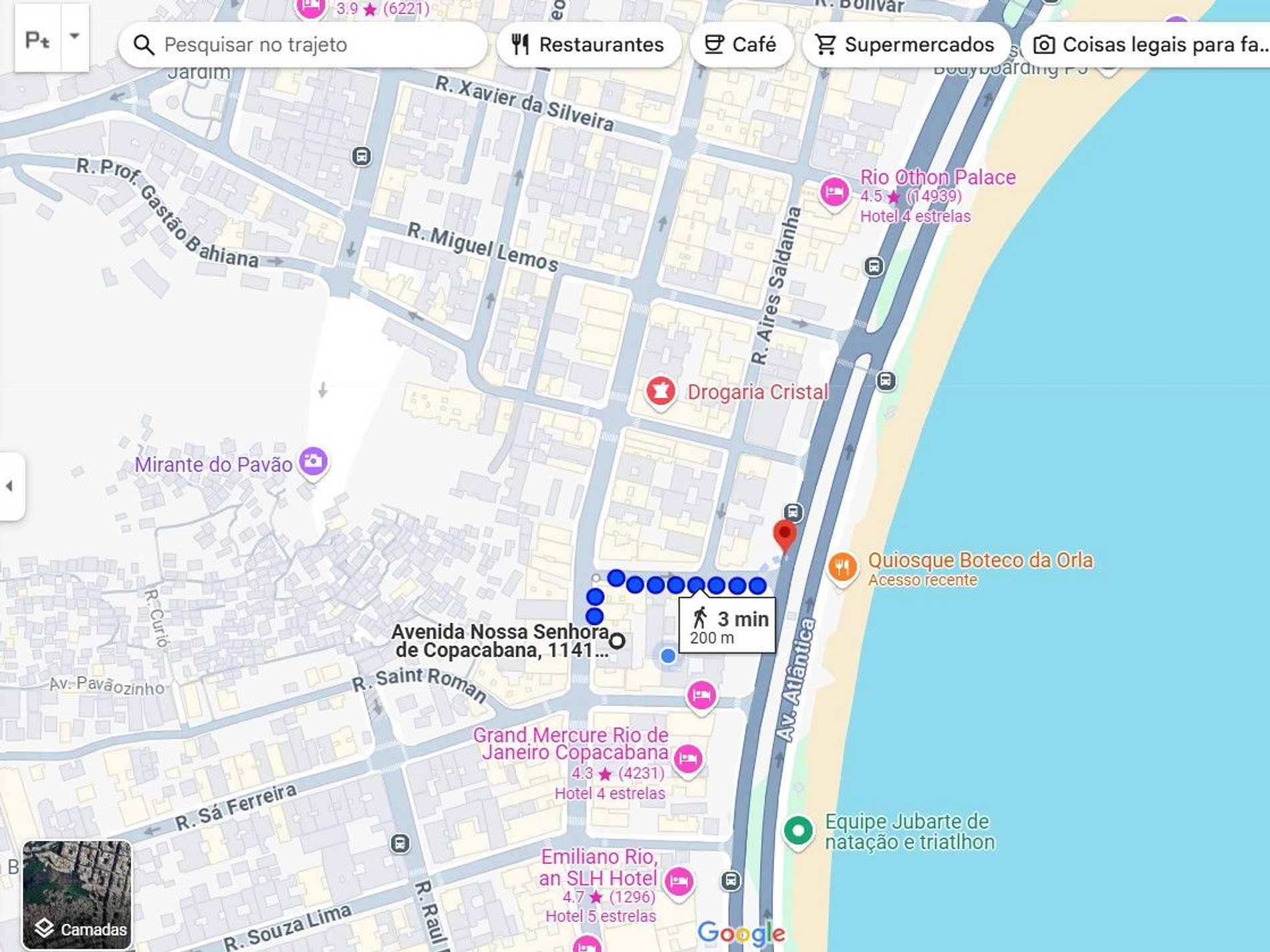 | Praia | Posto 5 Copacabana | 100 m |