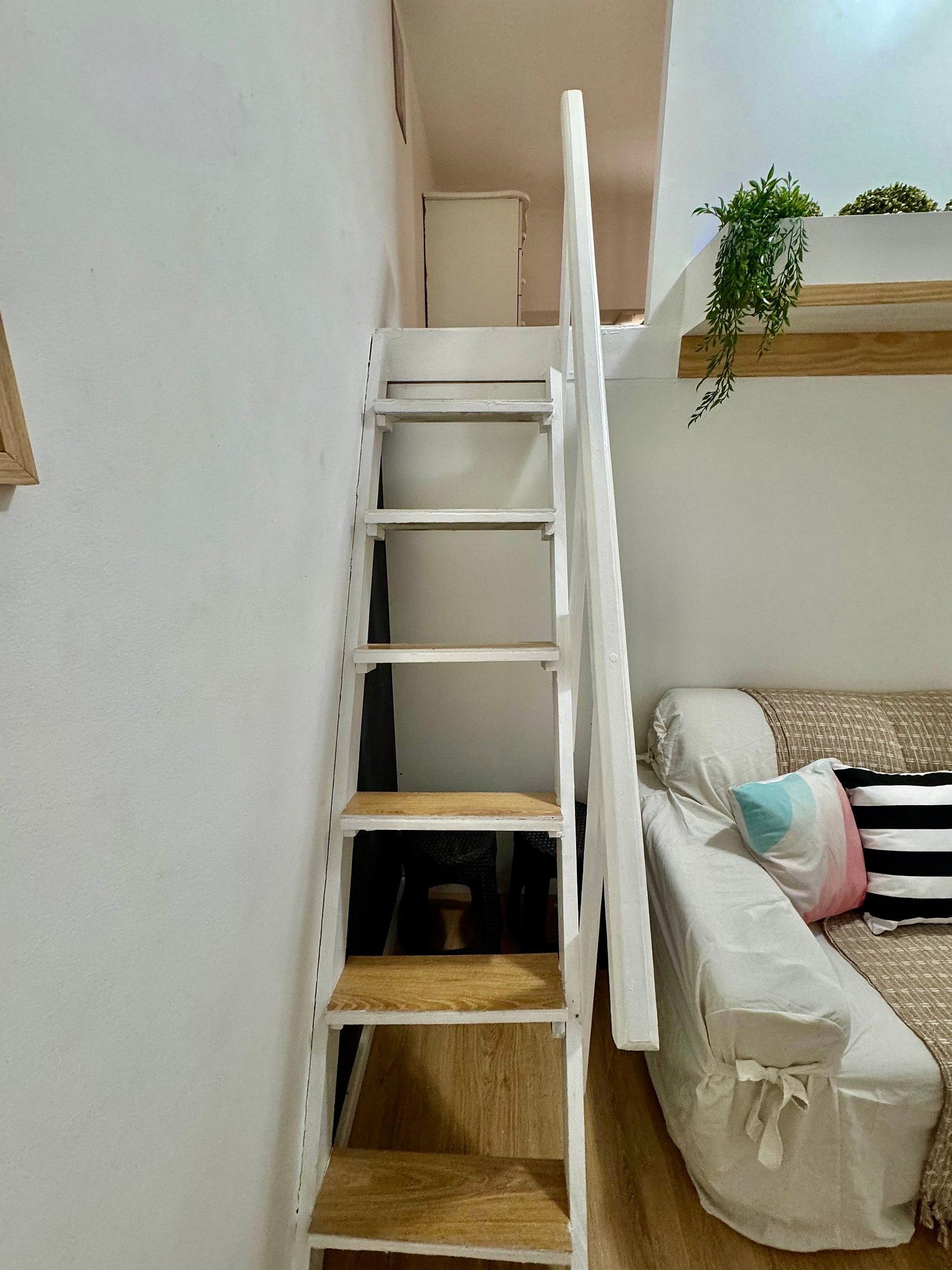 O pé-direito alto confere amplitude ao ambiente e dá acesso ao mezanino, um cantinho especial do apartamento. Quarto Privativo No quarto principal, uma cama de casal com roupas de cama macias convida ao descanso tranquilo.