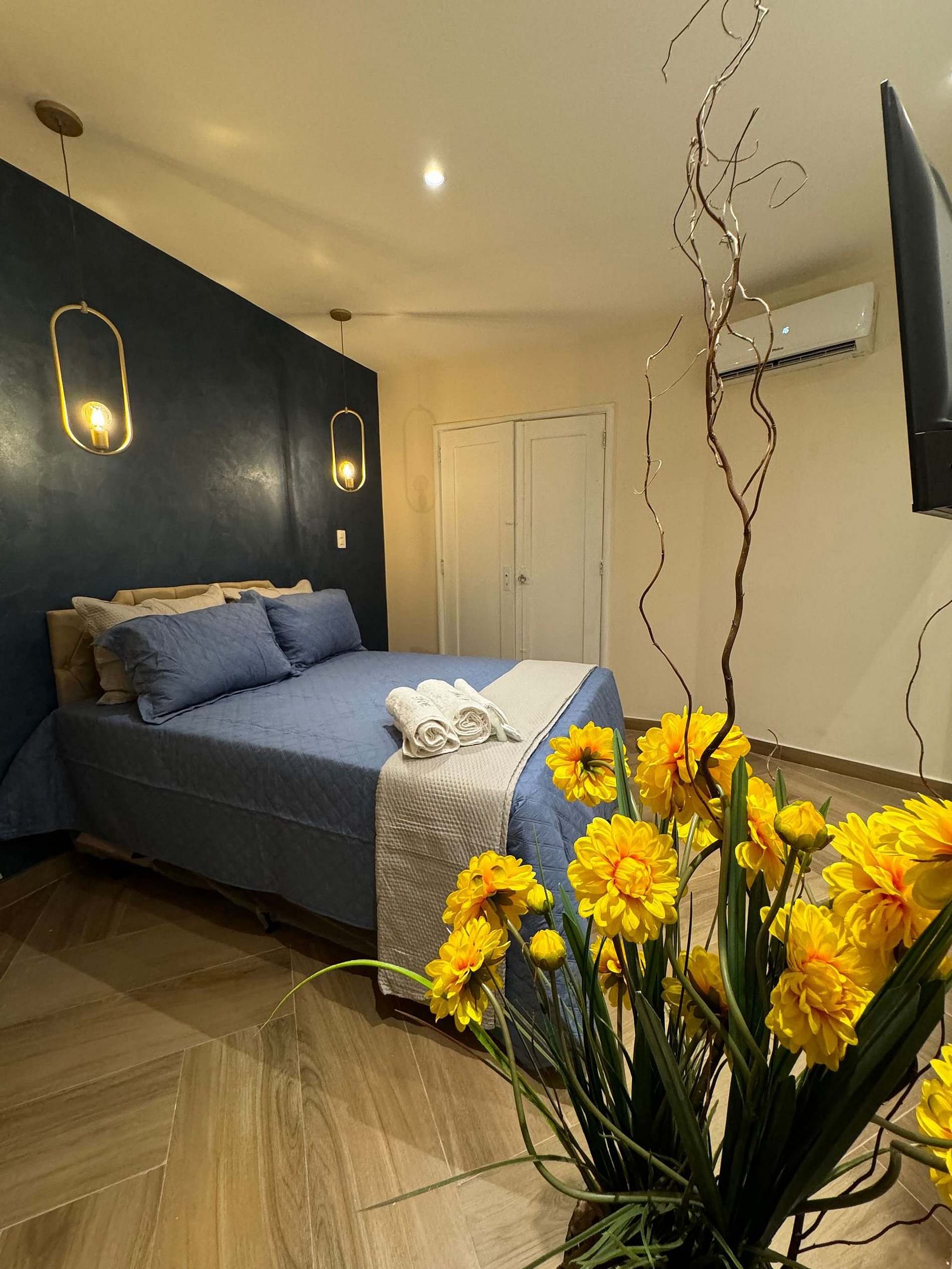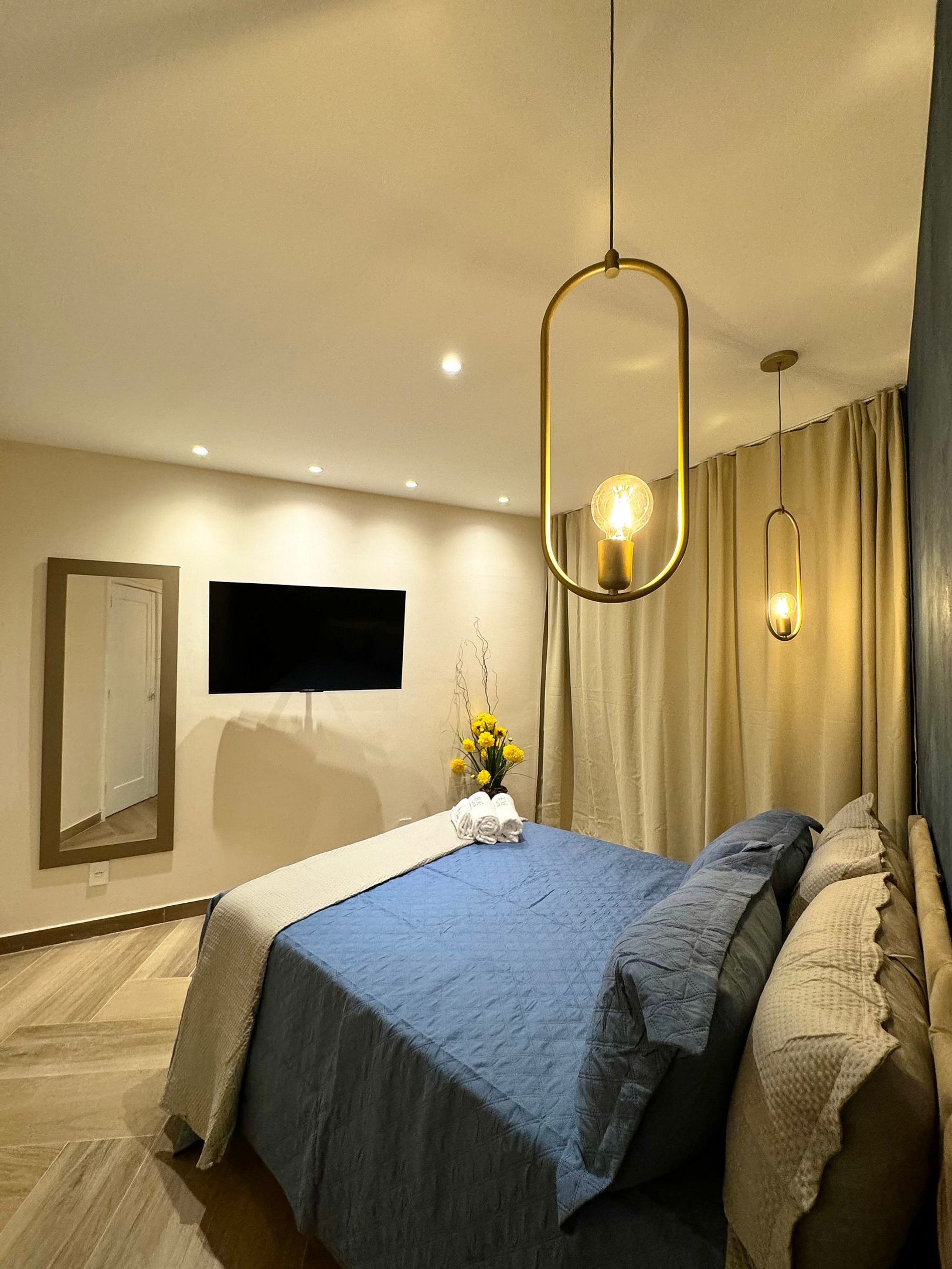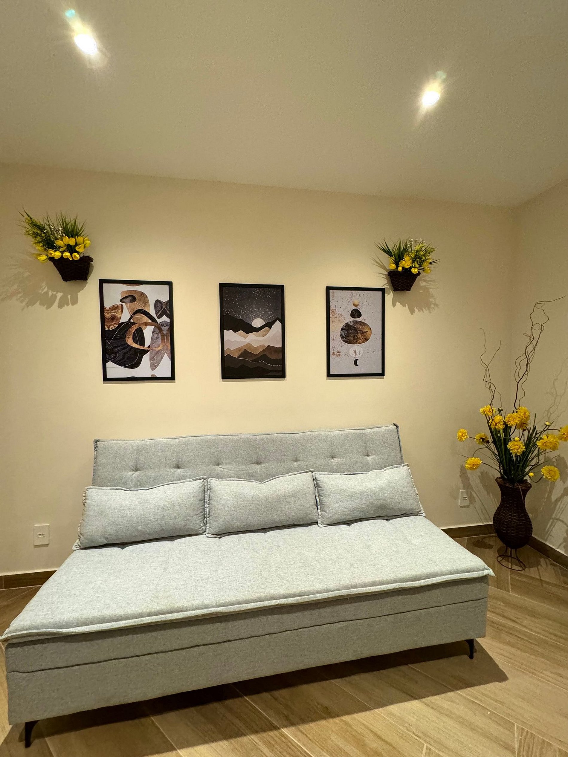 A acomodação possui 1 cama casal, 1 sofá cama de casal, ar condicionado. Banheiro completo e aconchegante, além de uma cozinha completa com todos os utensílios básicos necessários para tornar a sua estada confortável.