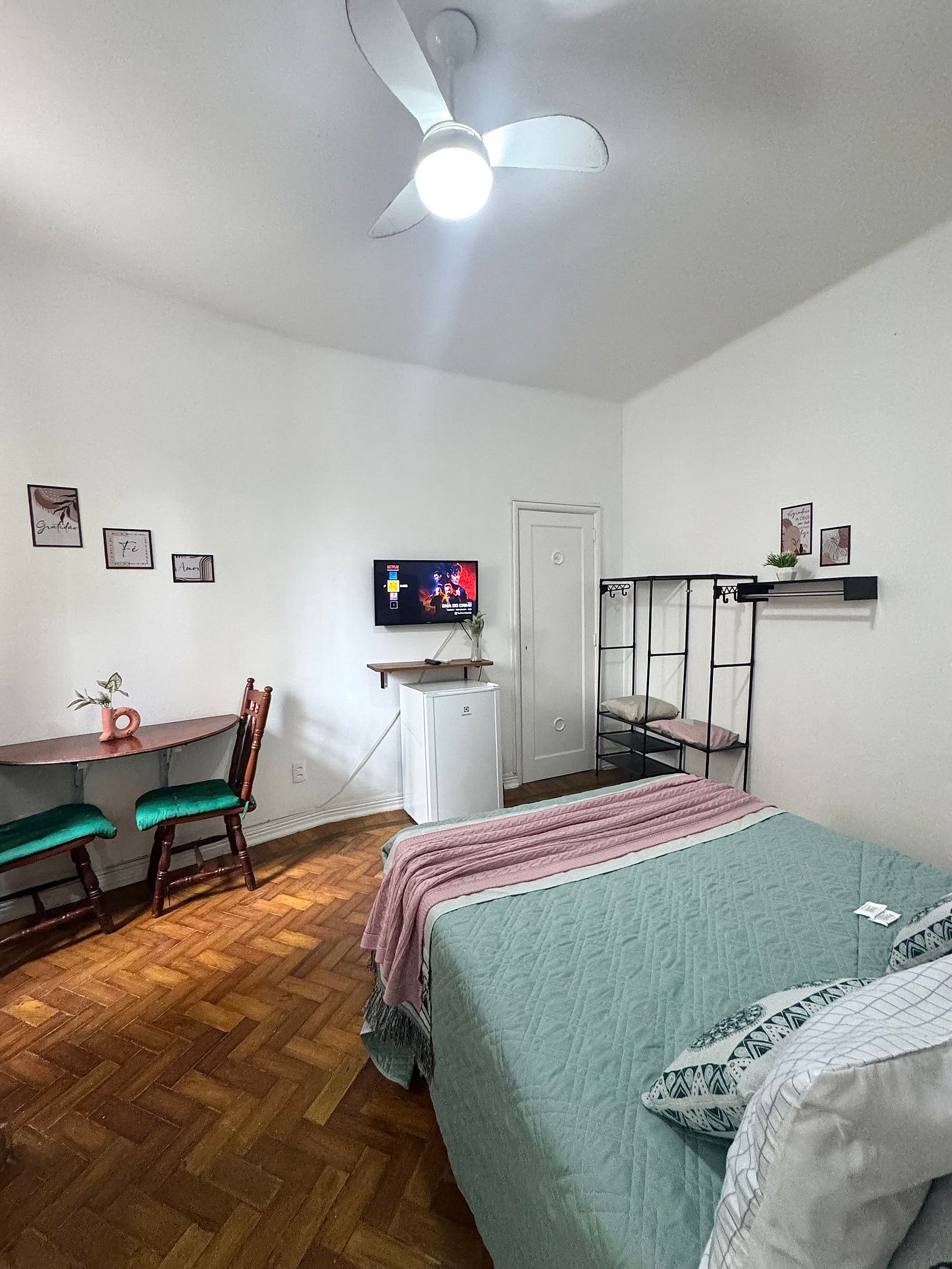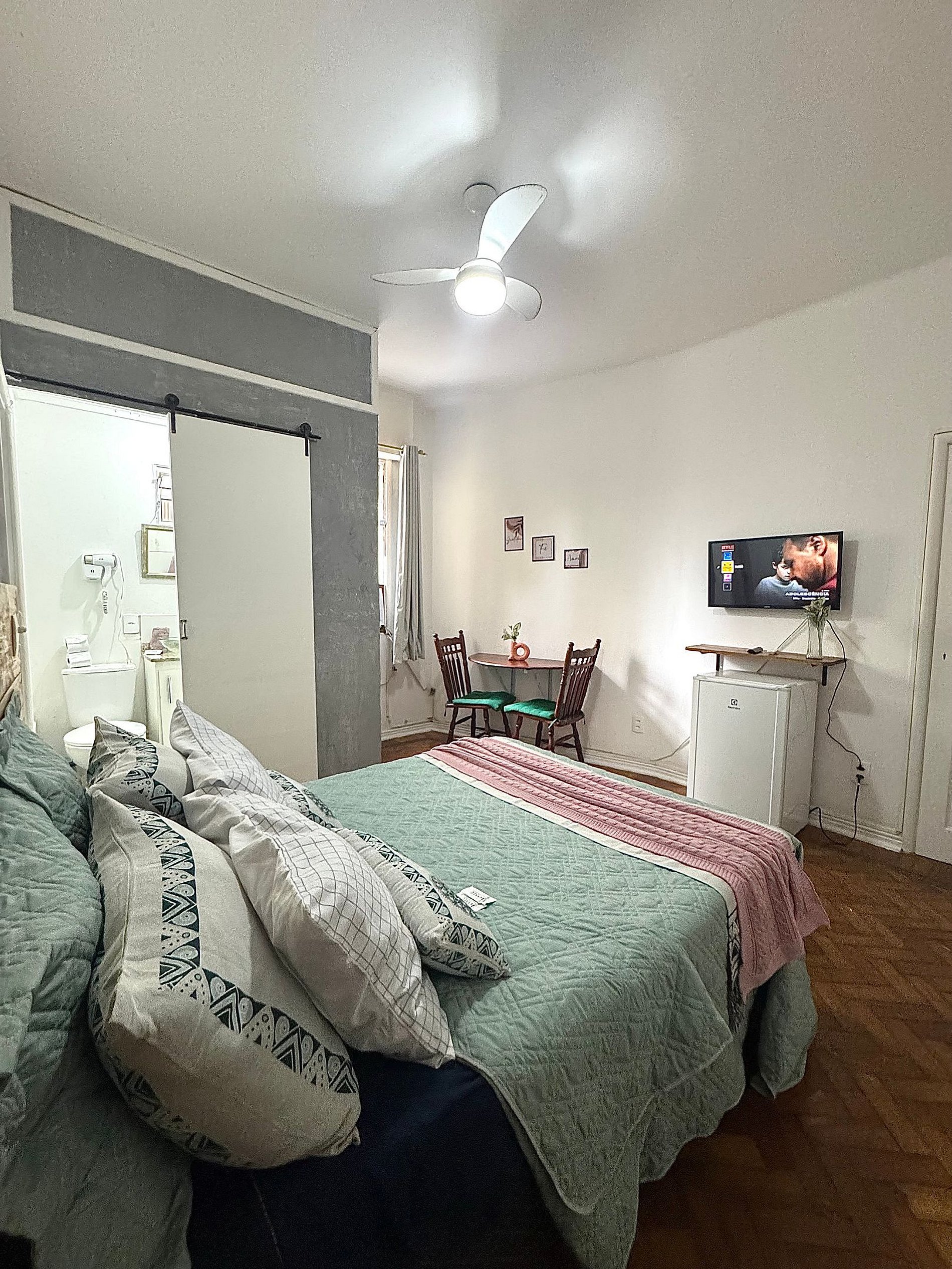 Ideal para casais, viajantes solo ou a trabalho, essa suíte aconchegante é pequena no tamanho, mas grande no conforto e praticidade. Cada cantinho foi pensado para oferecer uma experiência agradável, com tudo que você precisa para uma estadia tranquila e funcional.