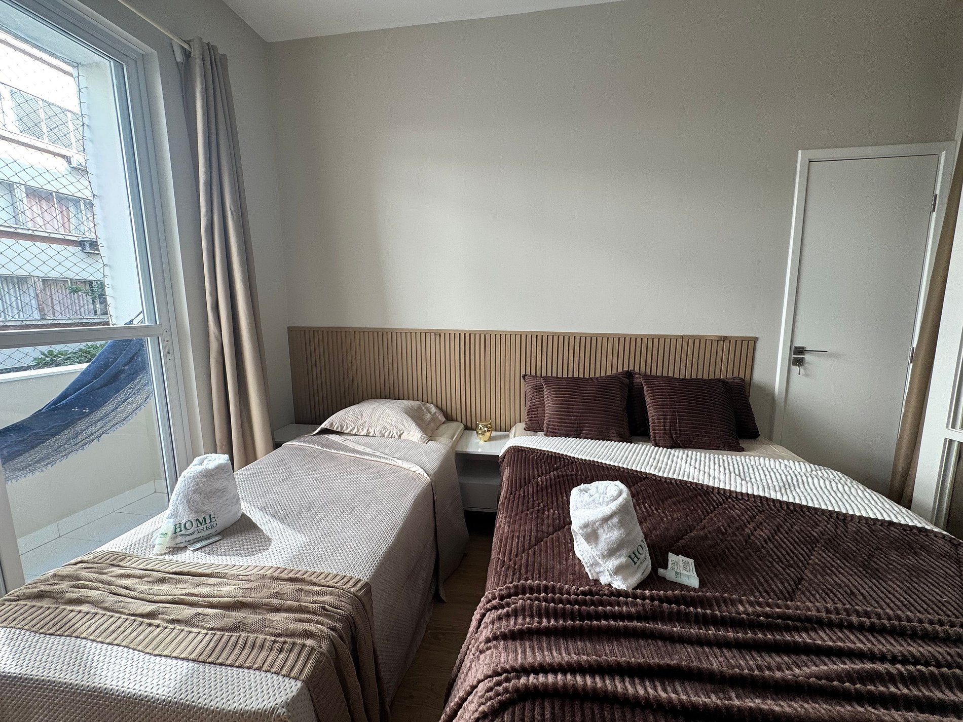 Cama de casal e cama de solteiro.