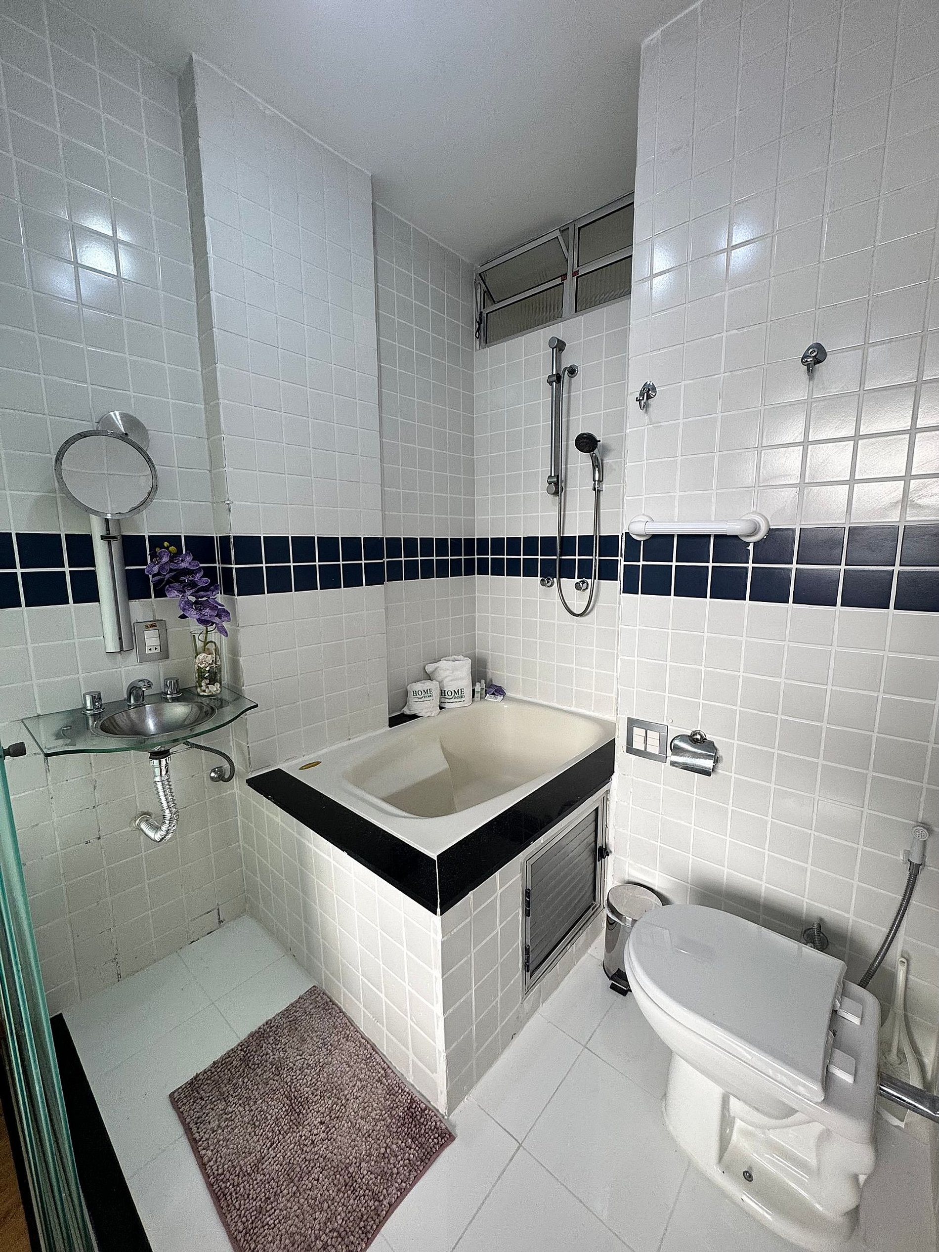 Banheiro privativo com jacuzzi para momentos de relaxamento.