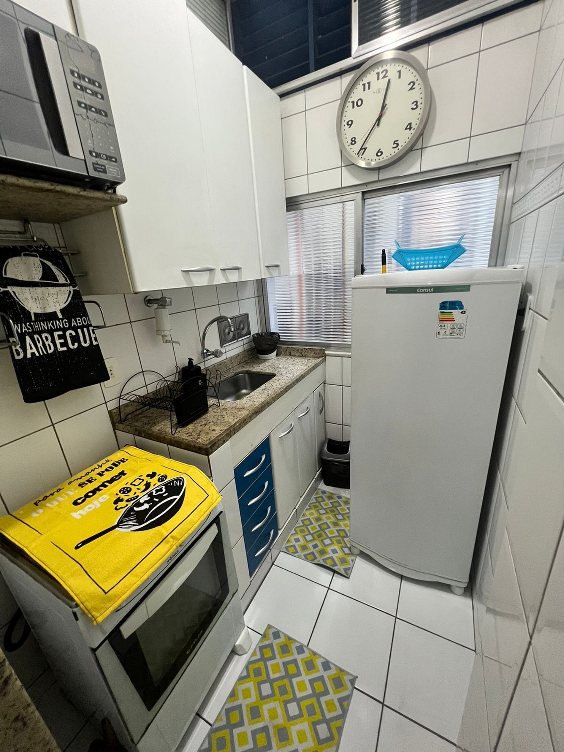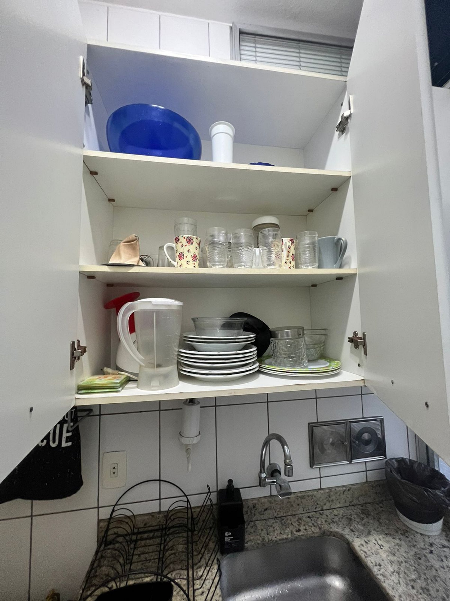 Totalmente equipada com fogão e forno, micro-ondas, geladeira e todos os utensílios necessários para cozinhar como panelas, pratos, copos, talheres, cafeteira, entre outros.