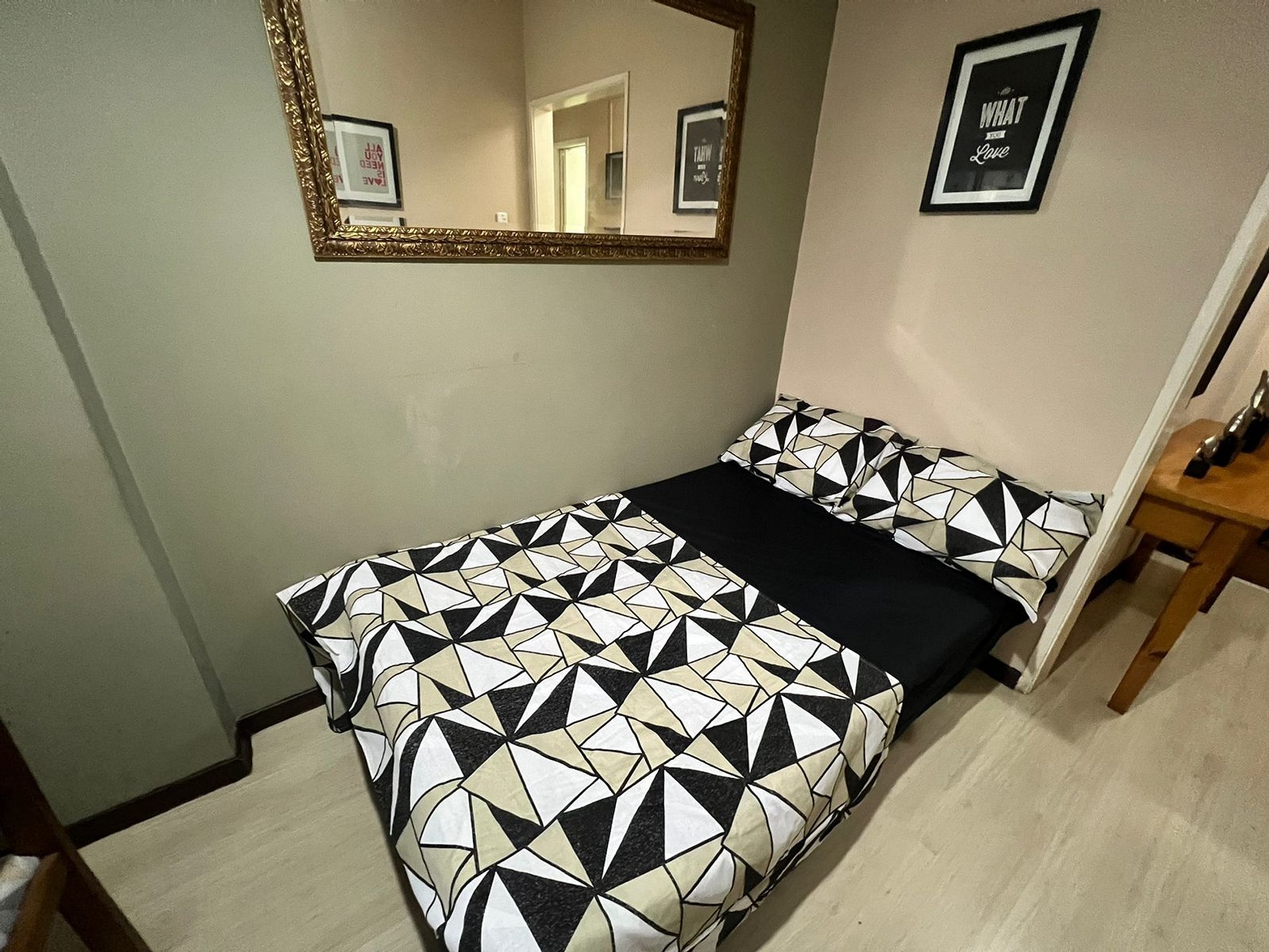 Quarto espaçoso com uma cama de casal confortável e roupas de cama de qualidade.