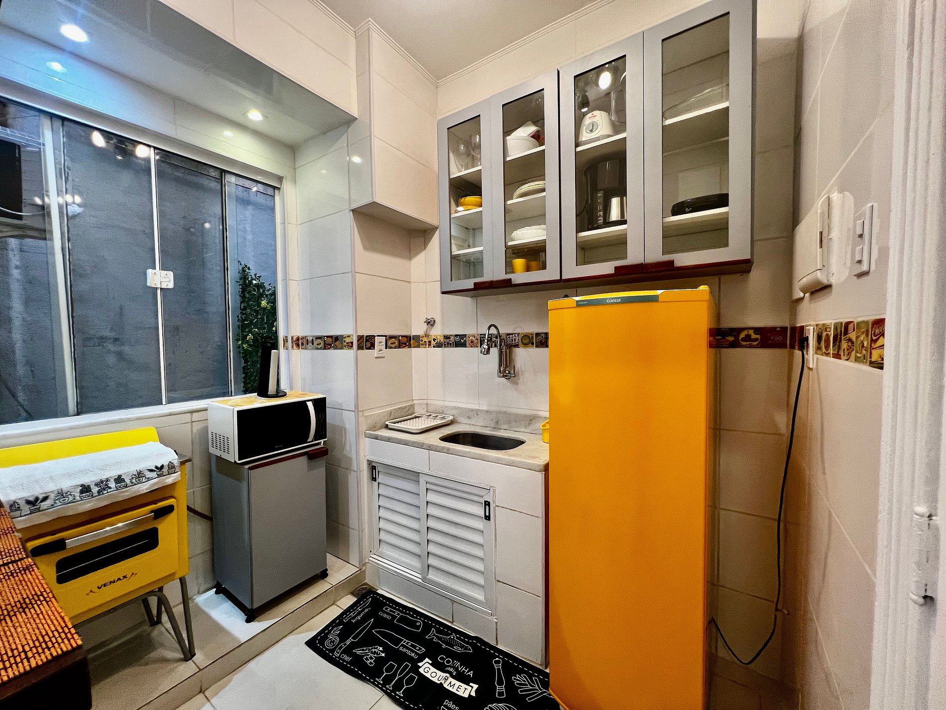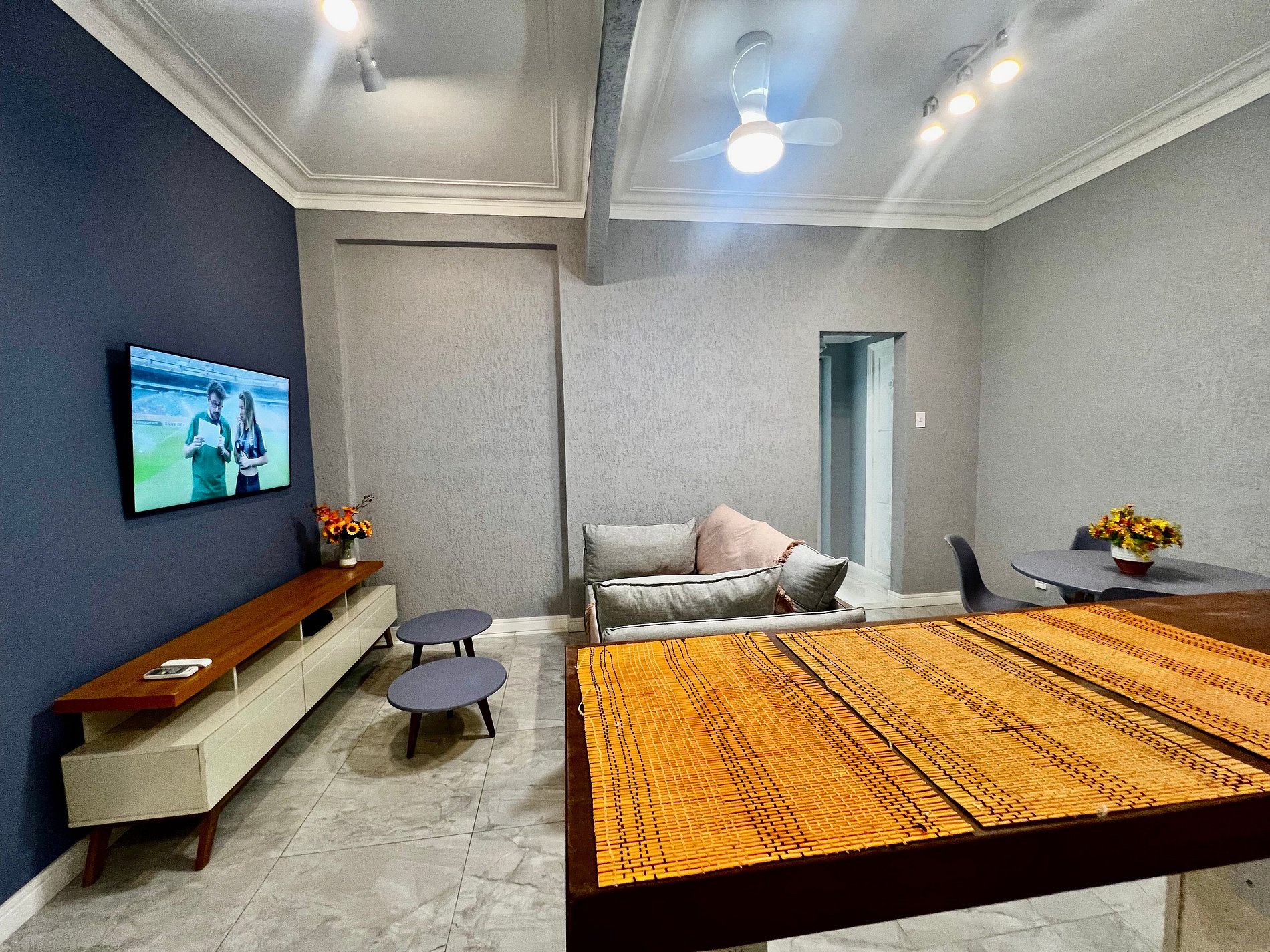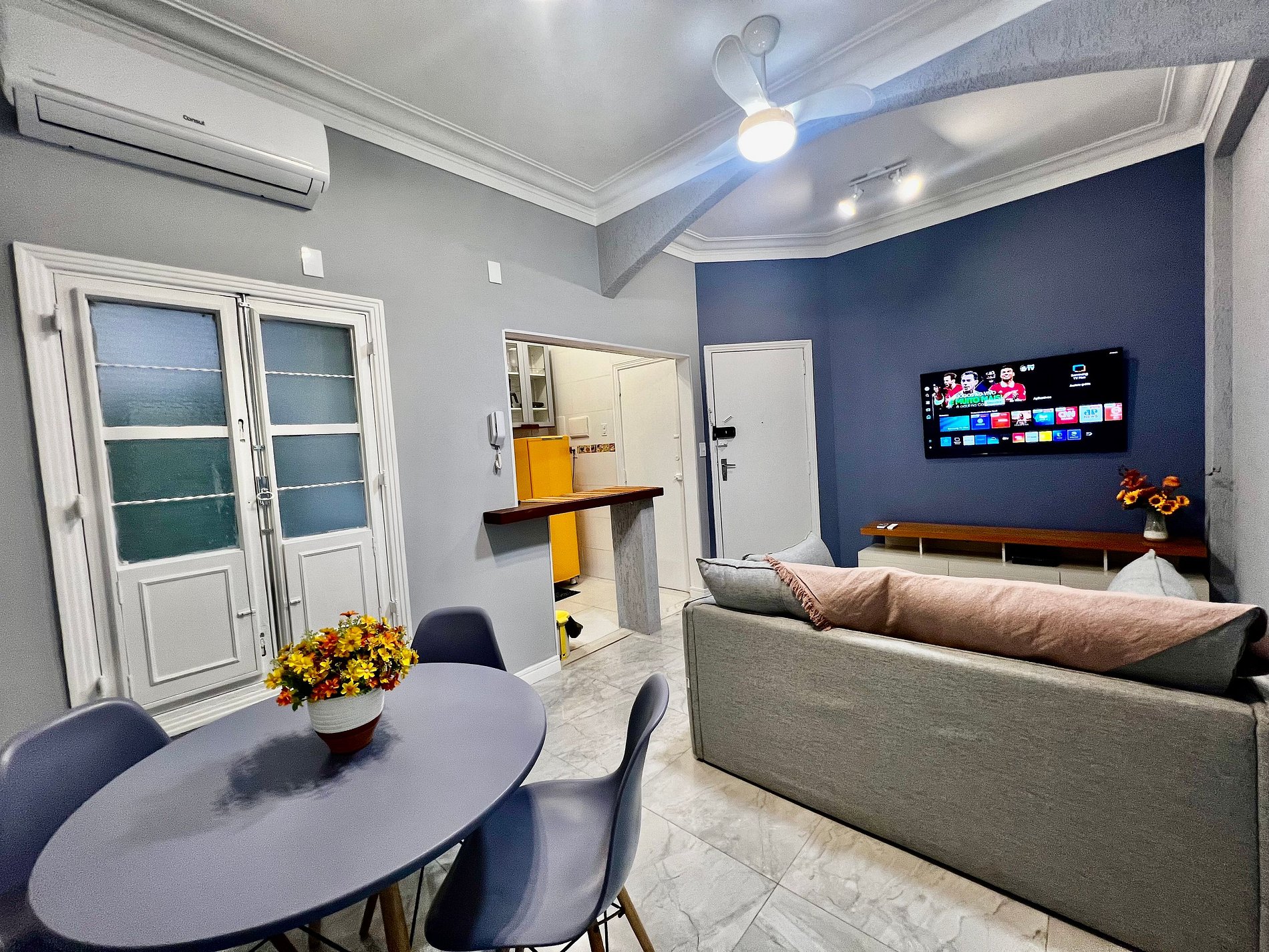 Desfrute de uma estadia confortável neste lindo apartamento completo, localizado no bairro de Copacabana na quadra da praia na rua de tras!