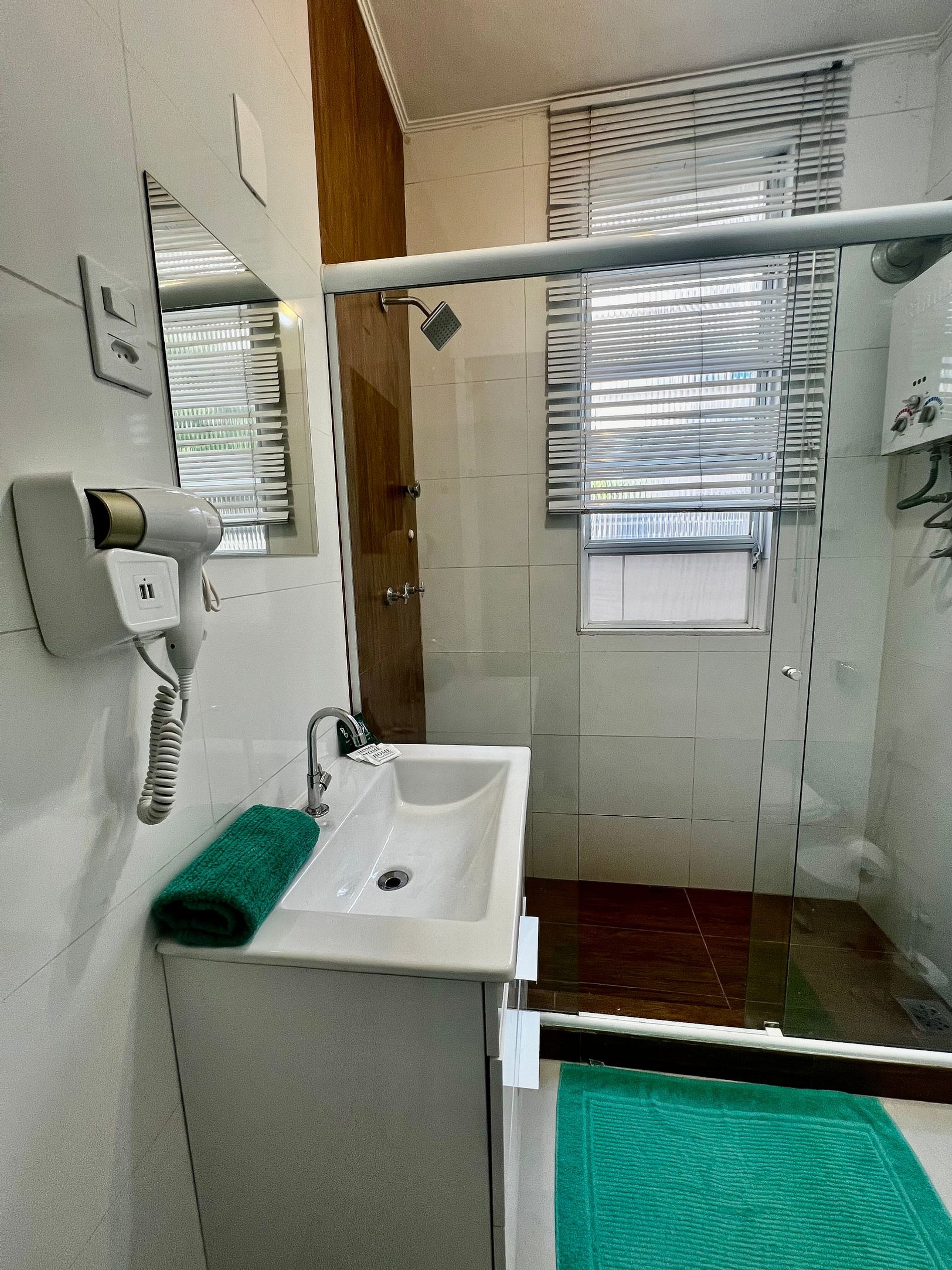 A acomodação possui 1 cama casal, 1 sofá cama de casal, ar condicionado. Banheiro completo e aconchegante, além de uma cozinha completa com todos os utensílios básicos necessários para tornar a sua estada confortável.