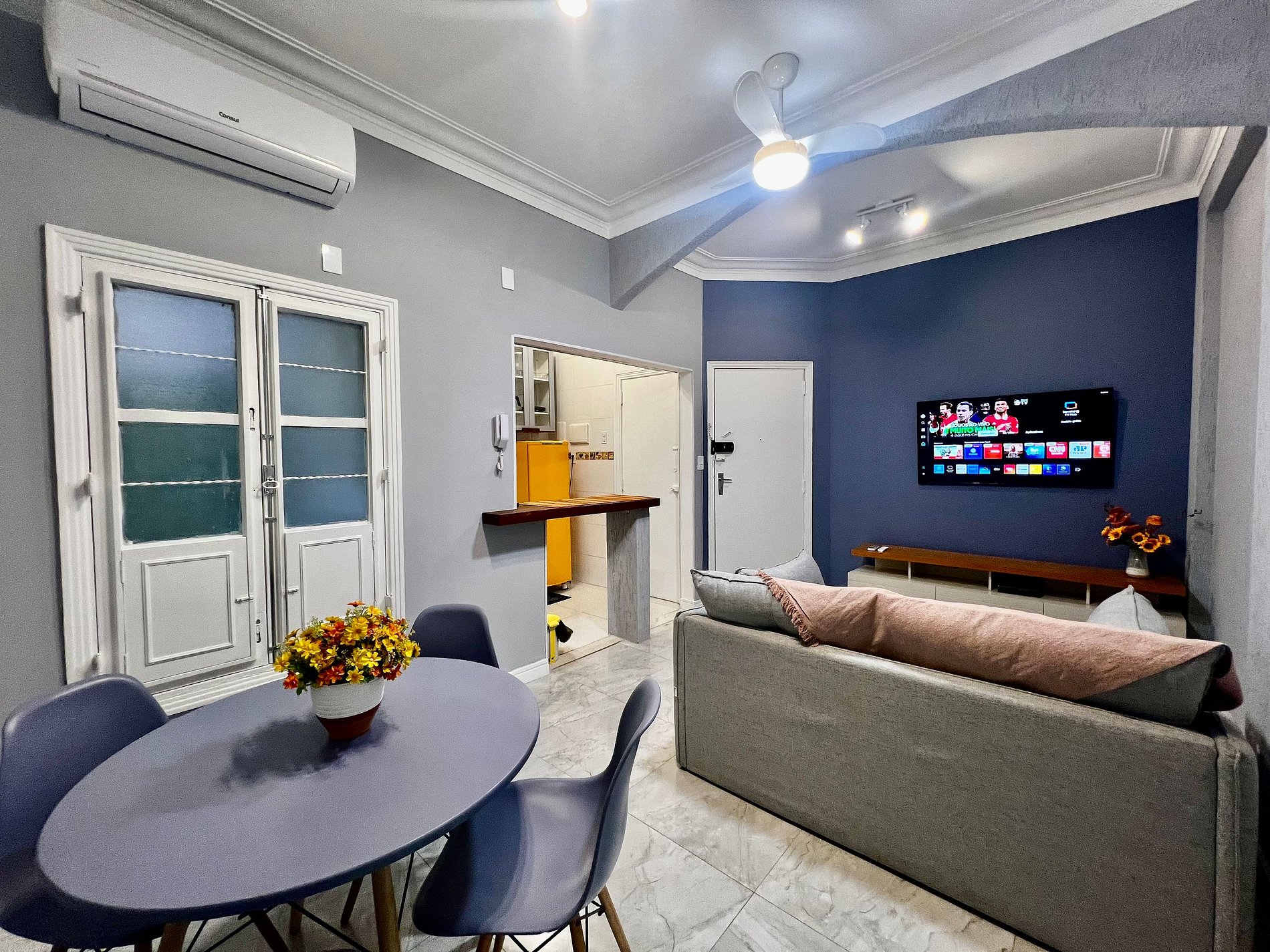 Desfrute de uma estadia confortável neste lindo apartamento completo, localizado no bairro de Copacabana na quadra da praia na rua de tras!