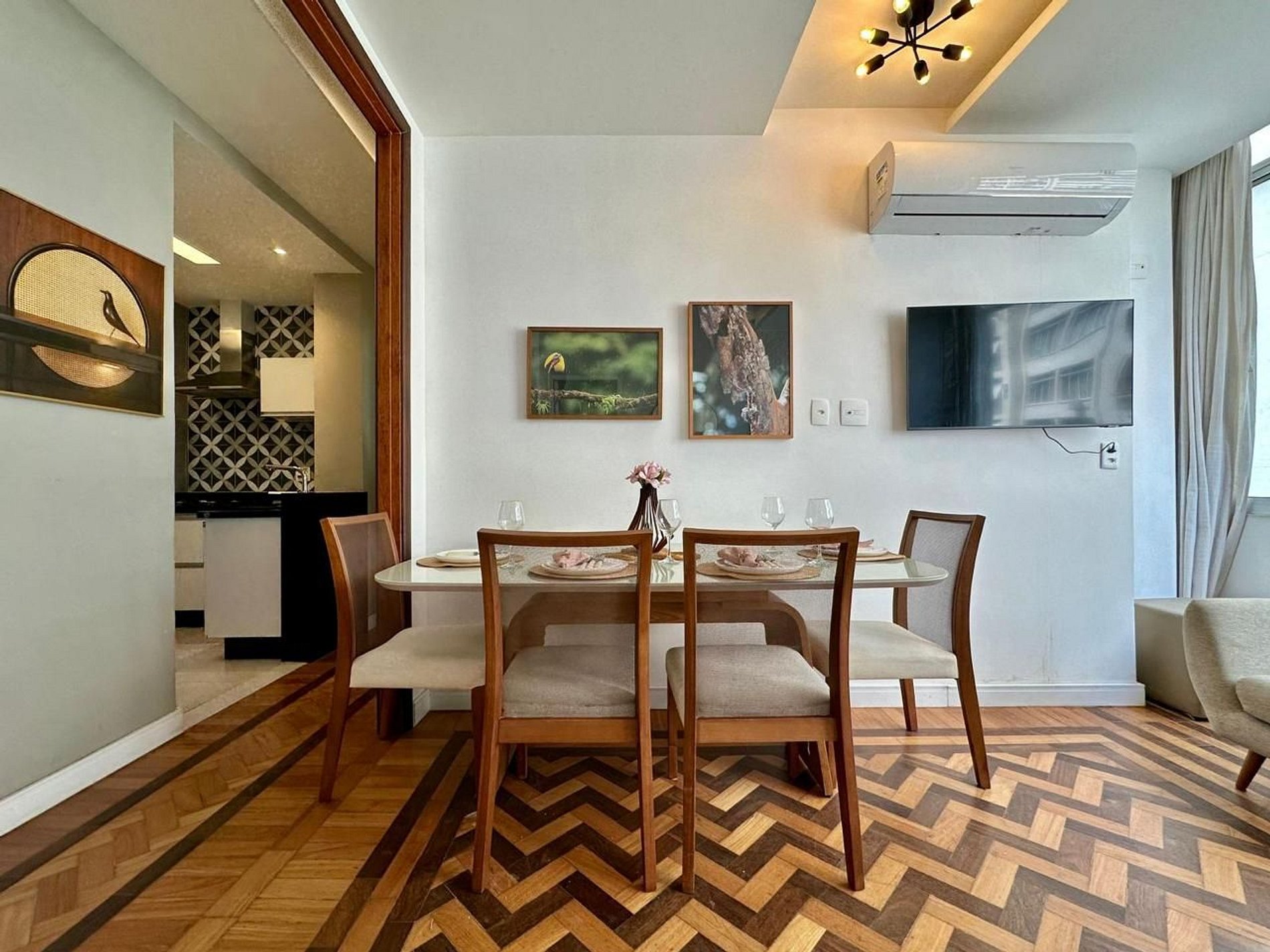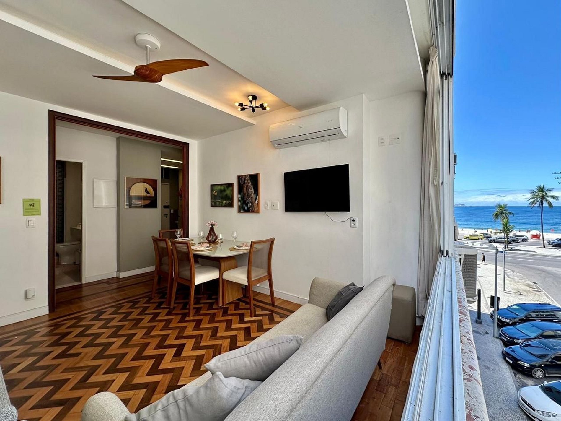 Descubra o equilíbrio perfeito entre conforto e sofisticação neste encantador apartamento em Copacabana, meticulosamente preparado para oferecer uma estadia memorável. Ao adentrar, você será imediatamente recebido por uma vista deslumbrante do mar, visível desde o sofá da sala, que convida ao relaxamento e à contemplação. Possui janelas amplas em todos os cômodos, permitindo uma bela vista e brisa fresca do mar. Clara e arejada, a sala de estar é um espaço elegante, com uma mesa de jantar requintada e um ambiente acolhedor.